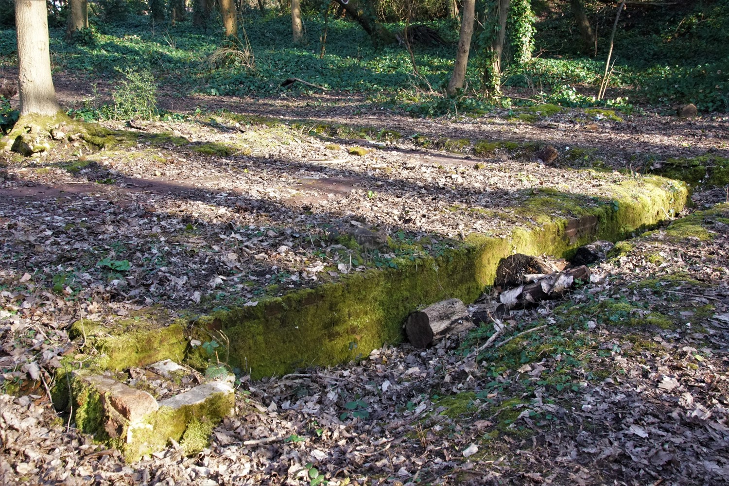 Alongside the Lodge the former driveway leads uphill to the location of Beechwood itself, now reverted to woodland.The platform where the house once stood can still just be made out.