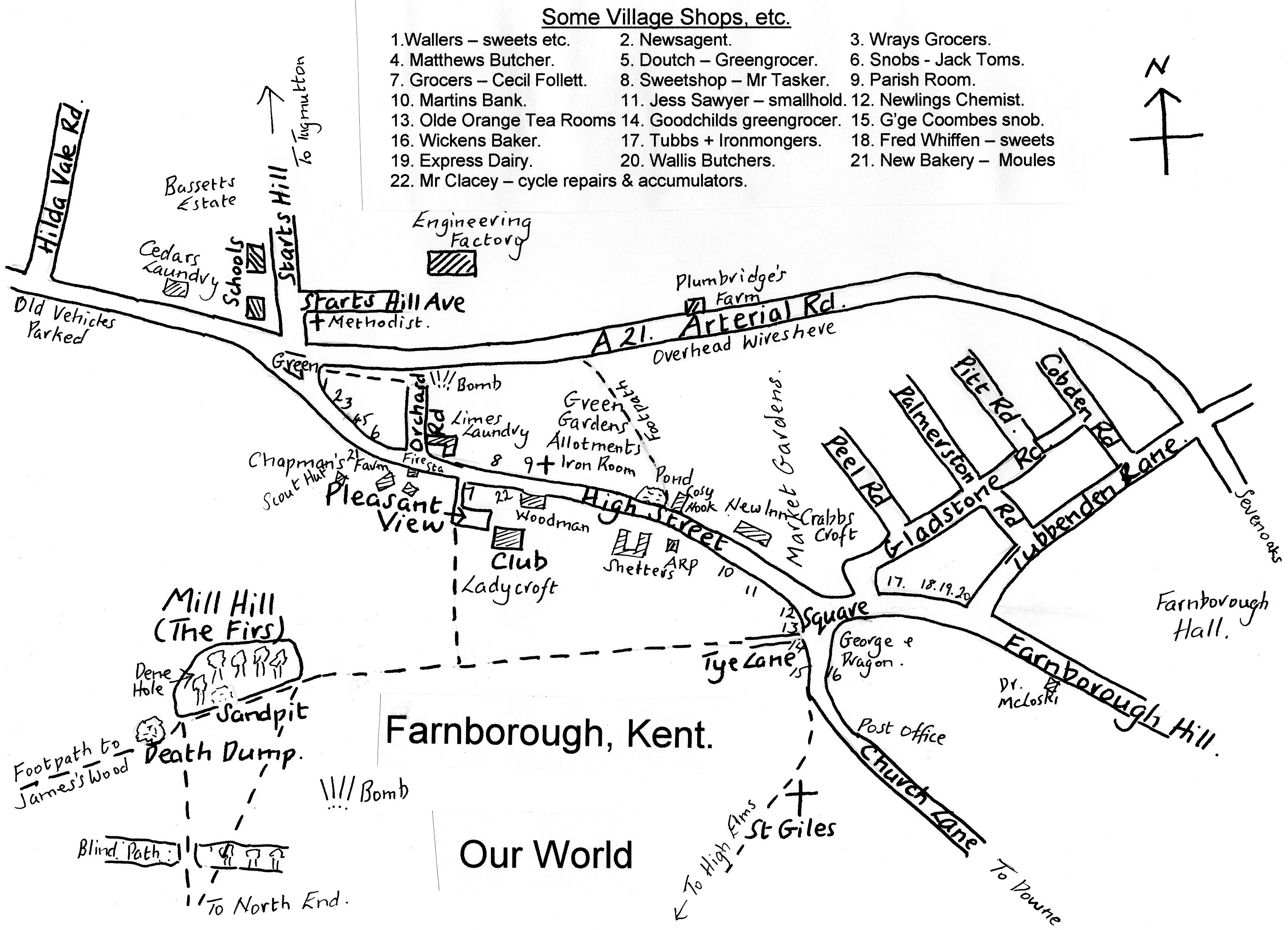 This booklet is intended to be a first draft of the memories of children who lived in and around Farnborough, Kent during the dark days of the Second World War. It is hoped that others will write their reminiscences for a possible second edition. As during the war photographic film was not generally available to the civilian population for security reasons, photographs of wartime Farnborough and its people are scarce. If any reader has pictures from this era would they please contact me? Also please let me know if you think we’ve made mistakes.