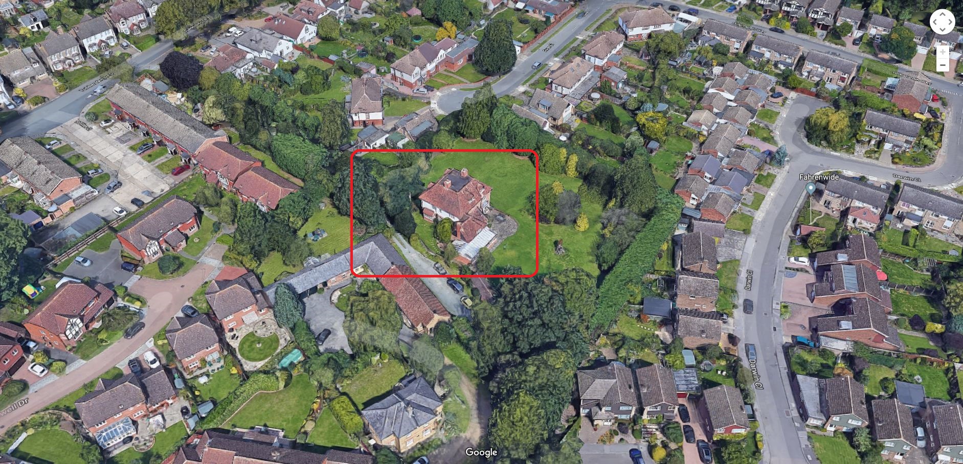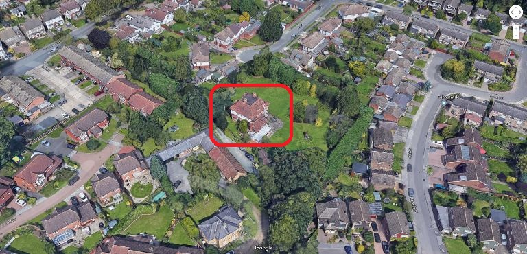 Farnborough Hall from above (centre), Tubbenden Lane South is top left corner