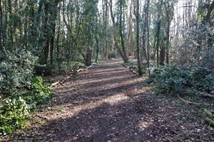 Alongside the Lodge the former driveway leads uphill to the location of Beechwood itself, now reverted to woodland.The platform where the house once stood can still just be made out.