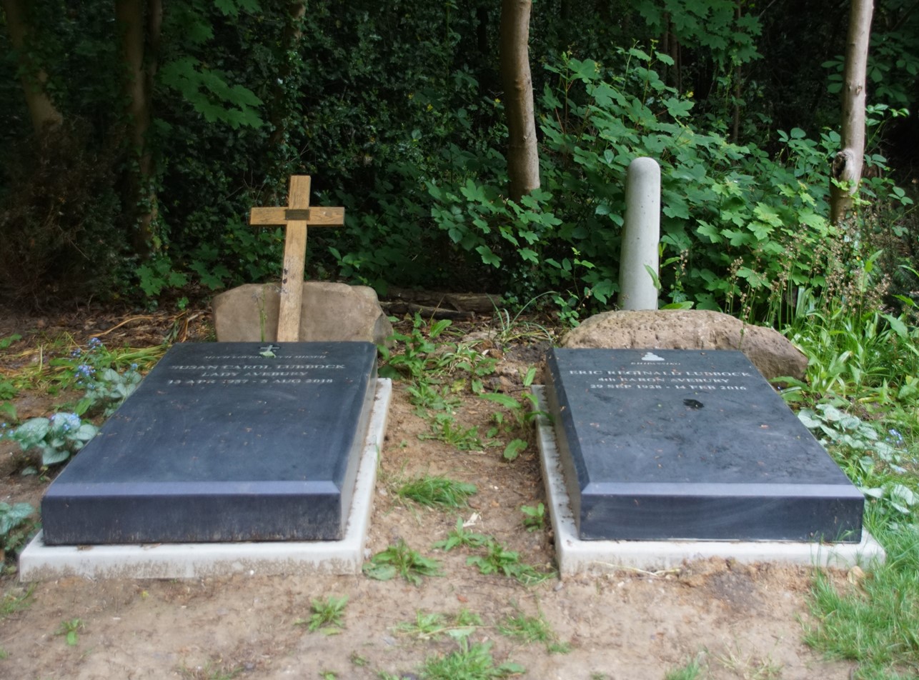 owned woodlands about 100 yards from St Giles churchyard. Between then and 1980, a number of family members were buried there, although not everyone who has their name on a monument actually is interred on the site (for example Harold and Eric are buried in British war cemeteries near where they were killed). From the 1930s no new graves were created. Instead, deceased family members were buried within existing tombs – most often under the Celtic cross which was John Lubbock’s grave. Their presence was marked by inscription on the sides and base of the cross. These can still be viewed today.