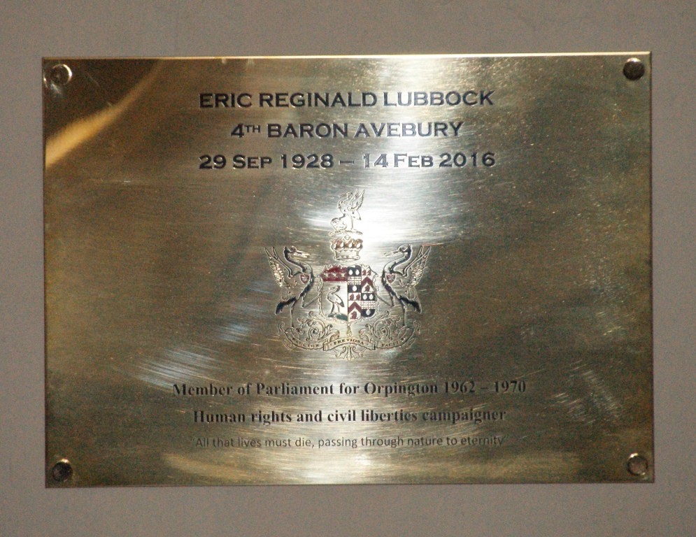 Eric Reginald Lubbock, the 4th Baron Avebury died on the morning of 14th February 2016 of a type of blood cancer. Eric was buried in the family graveyard in High Elms in a small private ceremony on the 21st of February. This was conducted with Buddhist rites and chanting monks, which drew a few curious glances from walkers passing through. Some of you will have noticed that work on restoring the plot has begun and eventually we hope to install a headstone when the soil settles. Two benches have been put in for passers-by and we hope to have some explanatory signage put in shortly.A plaque in his memory was unveiled in St. Giles Church Farnborough on Sunday 3rd July 2016. A number of members of the family were present, and a short address was given by his son Lyulph Lubbock, now the 5th Baron Avebury. .