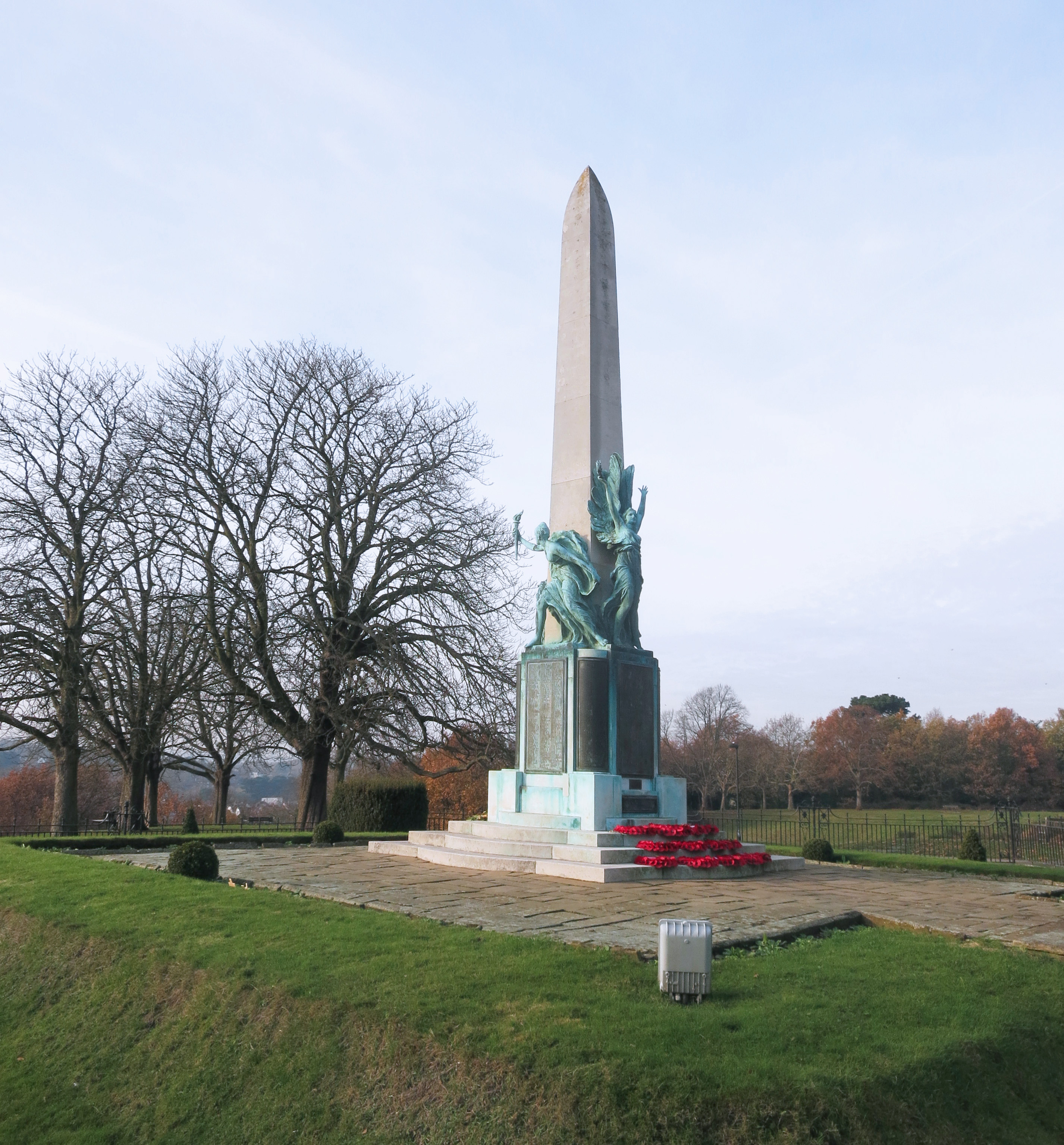 Situated at the top of the hill in St Martin’s recreation ground, was unveiled on 29th October 1922 by Lord Horne, G.C.B., K.C.M.G. and dedicated by the Bishop of Rochester John Reginald Harmer DD.The Portland stone pedestal is 27 feet 6 inches high. The three figures in cast bronze represent “Victory” in the front, “Liberty” on the left and “Sorrowful Remembrances” on the right. The memorial was designed and modelled by Sydney March, sculptor, and the bronze castings were executed by Messrs March Bros. of Farnborough.