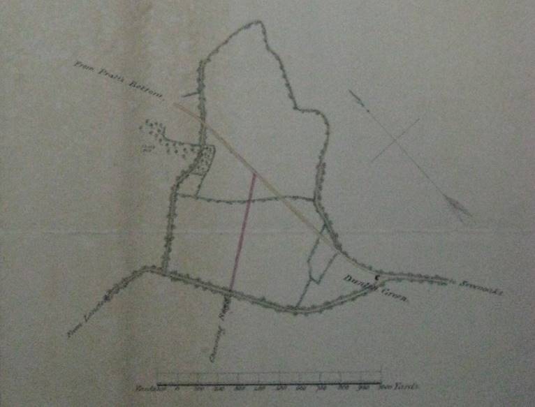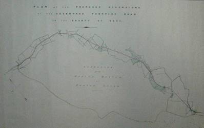 The map below shows the full extent of the diversion. The map on the right shows the new branch road, coloured red, to give access to the new turnpike from the estate.