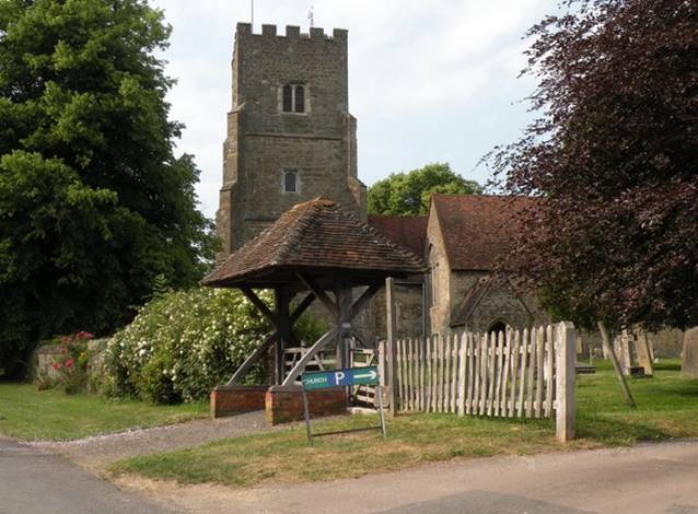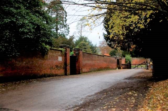 Chevening Church, where the access road ends, is opposite the boundary wall to the Chevening estate, which now contains private housing as well as the main house.
