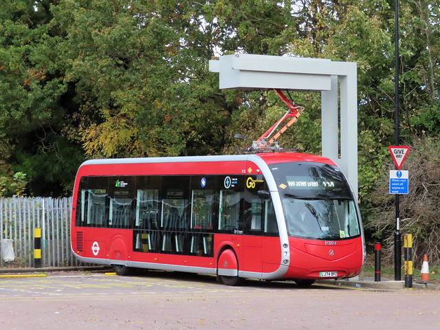 From November 2024 route 358 was converted to fully electric operation using Spanish-built Irizar buses with tram-like styling. These recharge using pantagraphs on the buses to connect to charging gantries at the two termini.. However due to reliability issues older diesel types are still seen frequently on the route.